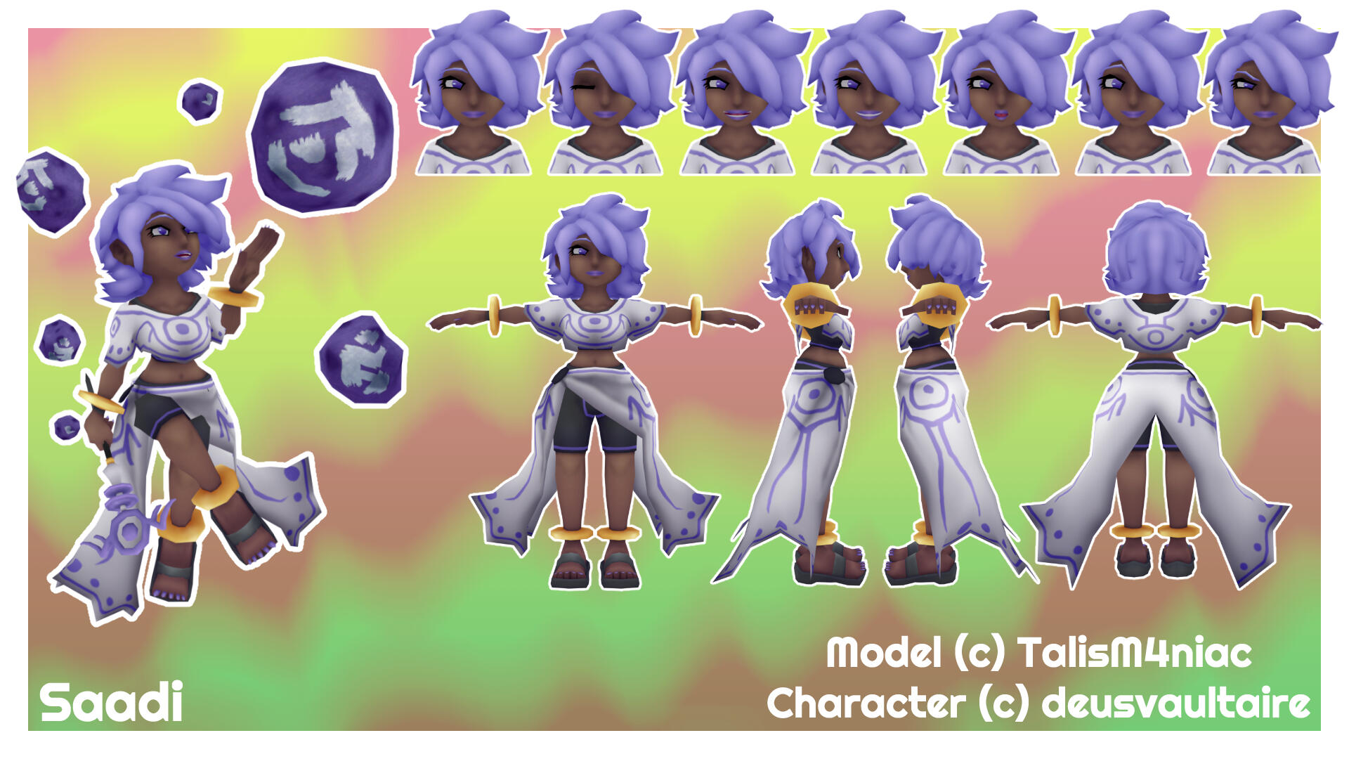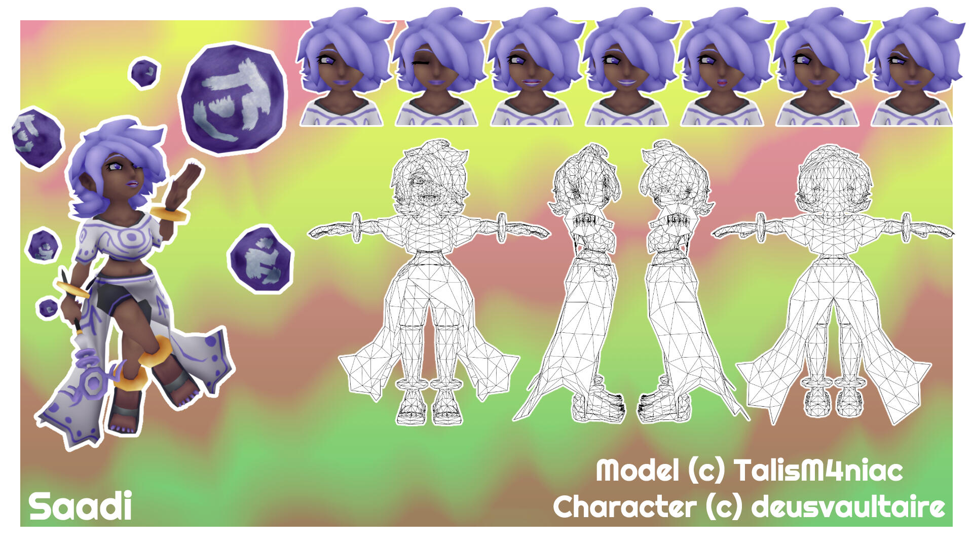 • Produce design notes, model sheets, lowpoly modeling, highpoly sculpting, texturing, rigging, and rendering for 3D character models.